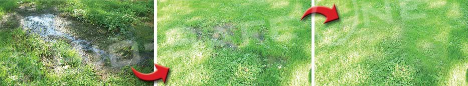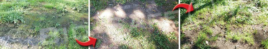 Pictures above are actual customer photos: 1. Flooded drainfield with surface water. 2. Water drying with Bio-Safe One. 3. After Bio-Safe One. Drainfield RESTORED.